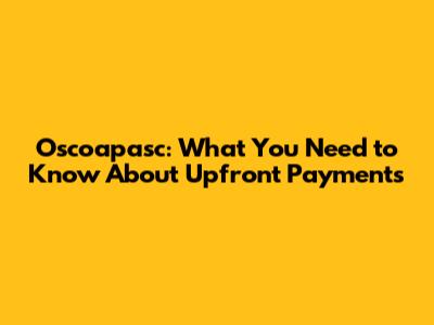 Oscoapasc: What You Need To Know About Upfront Payments