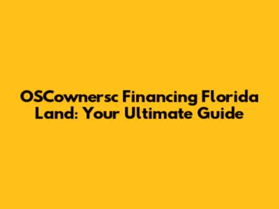 OSCownersc Financing: Your Guide To Florida Land Loans