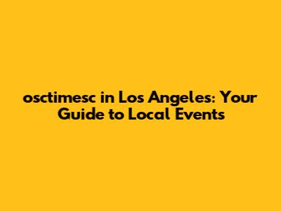 Osctimesc In Los Angeles: Your Guide To Local Events