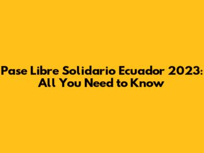 Pase Libre Solidario Ecuador 2023: All You Need To Know