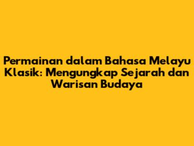Permainan Dalam Bahasa Melayu Klasik: Sejarah & Warisan