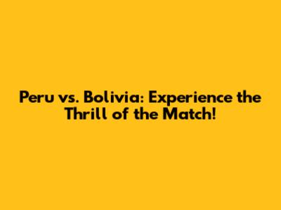 Peru Vs. Bolivia: Watch Live & Get The Best Viewing Experience!