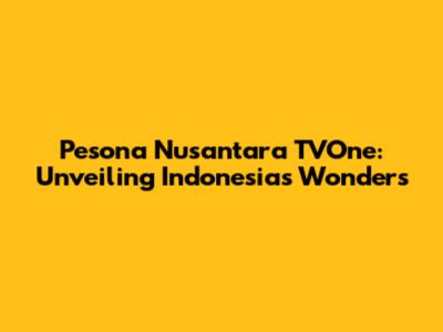 Pesona Nusantara TVOne: Unveiling Indonesia's Wonders