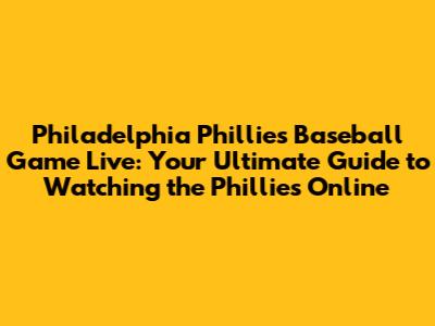 Phillies Game Live: Watch Philadelphia Baseball Online