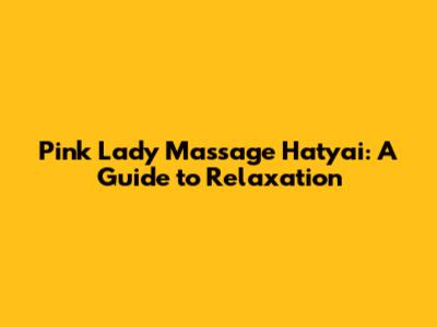 Pink Lady Massage Hatyai: A Guide To Relaxation