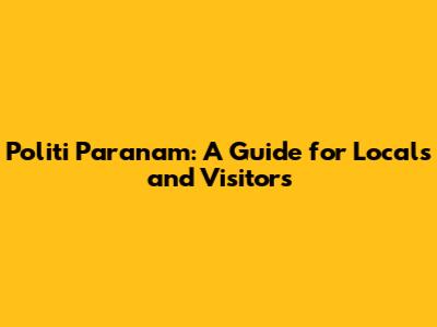 Politi Paranam: A Guide For Locals And Visitors