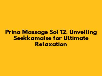 Hey there, relaxation seekers! Ready to dive into the world of Prina Massage Soi 12 and discover the secrets of seekkamaise? If you're looking for a top-notch massage experience in the heart of the action, you've stumbled upon the right place. We're going to explore everything you need to know about Prina Massage, from its location and services to what makes it a go-to spot for both locals and tourists. So, kick back, get comfy, and let's unravel the magic of Prina Massage together! Soi 12, known for its vibrant atmosphere, is a hub for various activities, and Prina Massage fits right in as a sanctuary of calm. Whether you're a seasoned massage aficionado or a curious newbie, this guide is your key to unlocking a truly rejuvenating experience. We'll delve into the atmosphere, the types of massages offered, and why Prina Massage stands out from the crowd. Plus, we'll provide some handy tips to ensure you have the best possible visit. Ready to learn more? Let's get started!