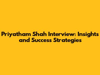 Priyatham Shah Interview: Insights And Success Strategies