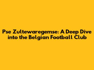 Pse Zultewaregemse: Unveiling Club History And More!
