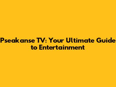 Pseakanse TV: Your Ultimate Guide To Entertainment