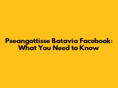 Pseangottisse Batavia Facebook: What You Need To Know