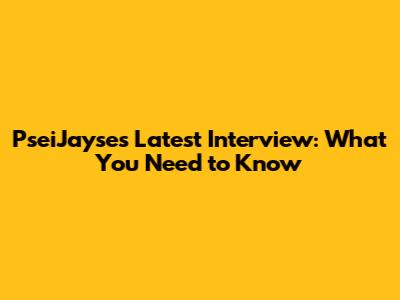 PseiJayse's Latest Interview: What You Need To Know