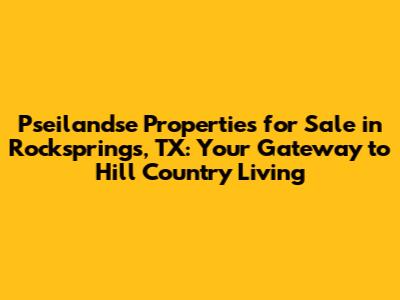 Hey there, property hunters! Are you dreaming of wide-open spaces, stunning landscapes, and a taste of the authentic Texan lifestyle? If so, you've probably stumbled upon Rocksprings, TX, and perhaps you're specifically searching for Pseilandse properties for sale. Well, you've come to the right place. Rocksprings, nestled in the heart of the Texas Hill Country, offers a unique blend of natural beauty, outdoor adventure, and a close-knit community. Let's dive into why Pseilandse properties in Rocksprings might be the perfect fit for you. We'll explore what makes this area so special, the types of properties you can find, and what you can expect from owning a piece of the Hill Country. Get ready to embark on a journey to discover your dream property!
