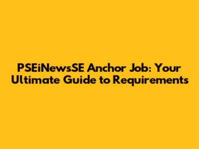PSEiNewsSE Anchor Job: What You Need To Know