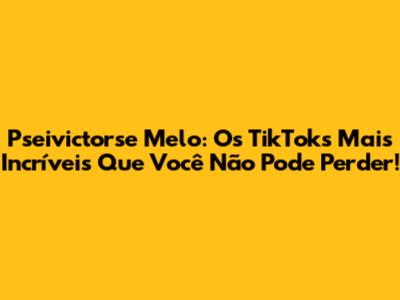 Pseivictorse Melo: Os Melhores TikToks Que Você Precisa Ver!