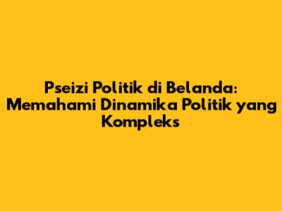 Pseizi politik di Belanda adalah sebuah konsep yang merujuk pada pengaruh dan peran kekuatan non-negara, seperti kelompok kepentingan, lobi, dan jaringan informal, dalam proses pengambilan keputusan politik di Belanda. Ini adalah topik yang sangat relevan untuk memahami bagaimana kebijakan dibuat, bagaimana kepentingan berbagai aktor diwakili, dan bagaimana demokrasi berfungsi dalam konteks Belanda. Dalam artikel ini, kita akan menjelajahi sejarah, dampak, dan perspektif dari pseizi politik di Belanda.