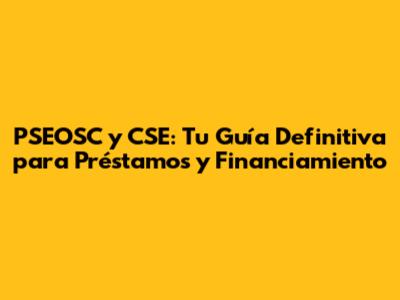 PSEOSC Y CSE: Guía Completa De Préstamos Y Financiamiento