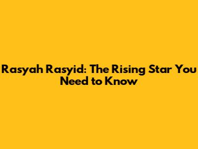 Rasyah Rasyid: The Rising Star You Need To Know