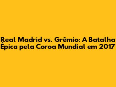 Real Madrid Vs. Grêmio: Final Do Mundial De Clubes 2017