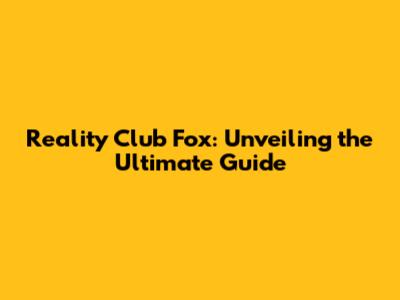 Reality Club Fox: Unveiling The Ultimate Guide