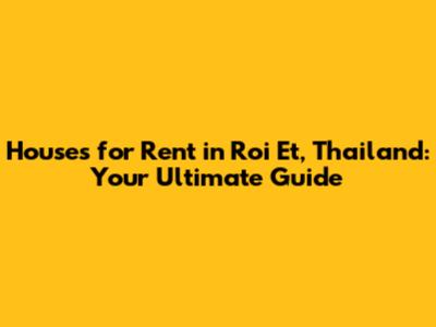 Finding houses for rent in Roi Et, Thailand, doesn't have to be stressful. By understanding the types of houses available, average rental costs, popular neighborhoods, and essential tips, you can confidently navigate the rental market and find the perfect place to call home. So, go ahead and start your search – your dream rental house in Roi Et awaits!