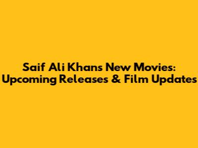 Saif Ali Khan's New Movies: Upcoming Releases & Film Updates