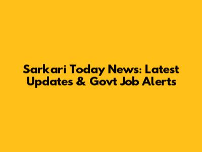 Sarkari Today News: Latest Updates & Govt Job Alerts