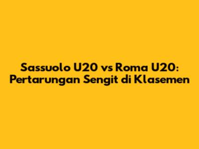 Sassuolo U20 Vs Roma U20: Klasemen, Analisis, Dan Pertandingan