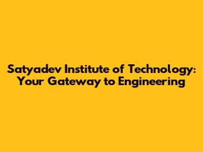 Satyadev Institute Of Technology: Your Gateway To Engineering