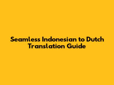 Seamless Indonesian To Dutch Translation Guide