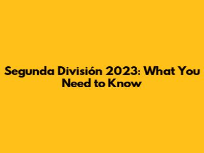 Segunda División 2023: What You Need To Know