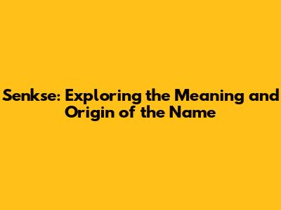 Senkse: Exploring The Meaning And Origin Of The Name