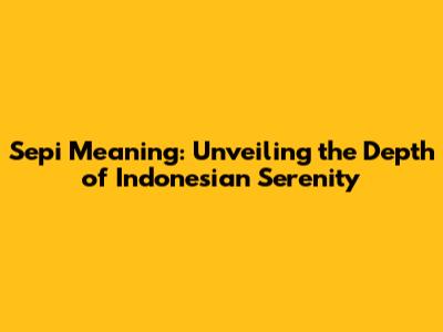 Have you ever stumbled upon the word β€œsepi” and wondered about its true meaning? Well, you're not alone! β€œSepi” is an Indonesian word that carries a depth of emotion and cultural significance that goes beyond a simple dictionary definition. It’s a concept deeply embedded in the Indonesian psyche, reflecting a state of being, a feeling, and even a philosophy. So, let's dive into the heart of β€œsepi” and explore its many facets.