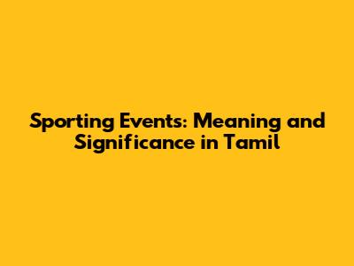 Sporting Events: Meaning And Significance In Tamil