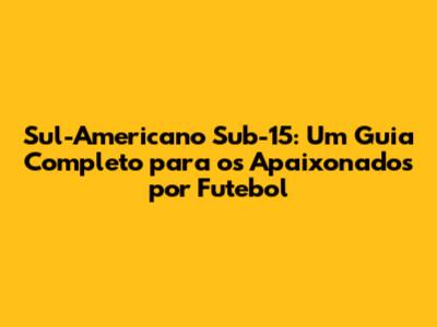 Sul-Americano Sub-15: Guia Completo E Análise Detalhada