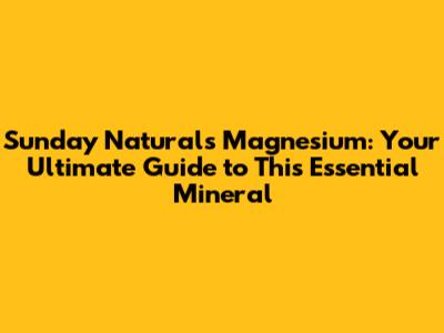 Sunday Naturals Magnesium: A Comprehensive Guide