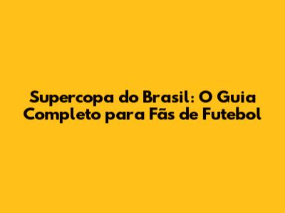 Supercopa Do Brasil: Tudo O Que Você Precisa Saber!