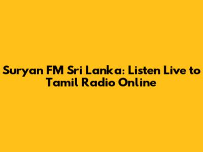 Suryan FM Sri Lanka: Listen Live To Tamil Radio Online