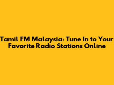 Tamil FM Malaysia: Listen To Your Favorite Radio Stations Online