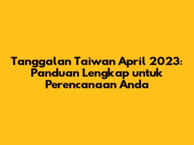 Tanggalan Taiwan April 2023 adalah panduan penting bagi siapa saja yang ingin merencanakan kegiatan di Taiwan pada bulan April. Baik Anda seorang turis yang ingin menjelajahi keindahan Taiwan, seorang ekspatriat yang tinggal di sana, atau hanya seseorang yang tertarik dengan budaya Taiwan, mengetahui jadwal, hari libur, dan perayaan di bulan April sangatlah berguna. Artikel ini akan membahas secara rinci tanggalan Taiwan April 2023, memberikan informasi yang komprehensif untuk membantu Anda merencanakan perjalanan atau kegiatan Anda.