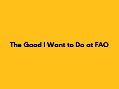 The Good I Want To Do At FAO