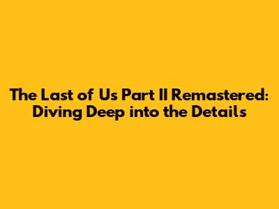 Hey guys, are you ready to revisit the post-apocalyptic world of The Last of Us Part II? Well, buckle up because the remastered version is on its way, and it's bringing some serious upgrades! If you're anything like me, you've probably been itching to get back into the game and experience the story all over again, maybe with a fresh coat of paint and some new goodies. This article is your one-stop shop for everything you need to know about The Last of Us Part II Remastered. We'll dive into the release date, upgrades, gameplay enhancements, and all the juicy details that make this a must-have for both veterans and newcomers alike. So, let's get started!