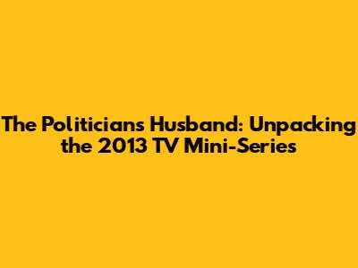 Hey guys! Let's dive into the gripping world of The Politician's Husband, that intense 2013 TV mini-series that left us all talking. If you're into political dramas that really get under your skin, exploring the darker side of ambition and relationships, then this show is right up your alley. We're going to break down what made it so compelling, its key players, and why it still resonates today. So grab your popcorn, and let's get into it!