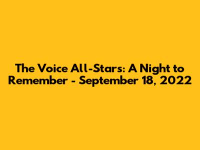 Hey music lovers! Let's rewind to September 18, 2022, a date etched in the memories of The Voice fans everywhere. That night, the stage wasn't just graced with talent; it was practically vibrating with the collective energy of returning champions and fan favorites. It was The Voice All-Stars, and trust me, it was a spectacle you wouldn't want to miss. For those of you who might've missed it, or just want a sweet dose of nostalgia, let's dive into what made this particular episode so special. We're going to explore the stellar performances, the heart-stopping moments, and the overall vibe that made this night a true gem in the Voice history.