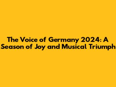 The Voice Of Germany 2024: A Season Of Joy And Musical Triumph
