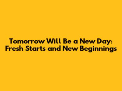 Tomorrow Will Be A New Day: Fresh Starts And New Beginnings