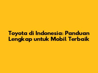 Toyota Di Indonesia: Panduan Lengkap Untuk Mobil Terbaik