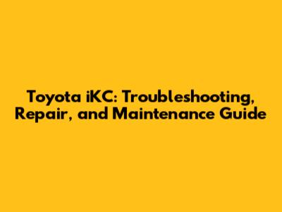 Toyota IKC: Troubleshooting, Repair, And Maintenance Guide