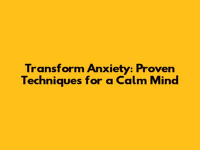 Transform Anxiety: Proven Techniques For A Calm Mind