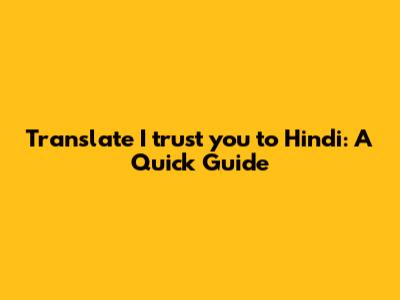 Translate 'I Trust You' To Hindi: A Quick Guide